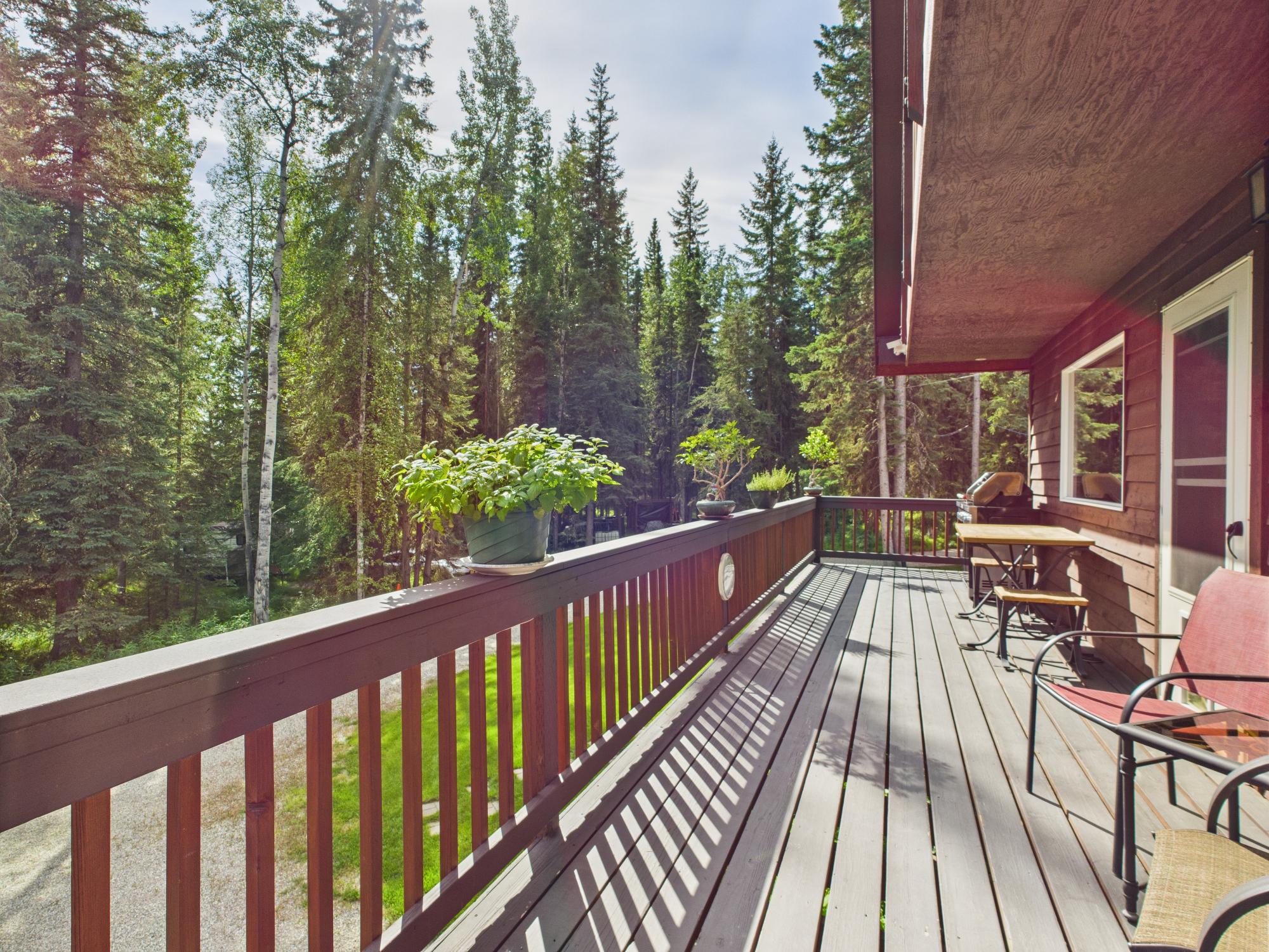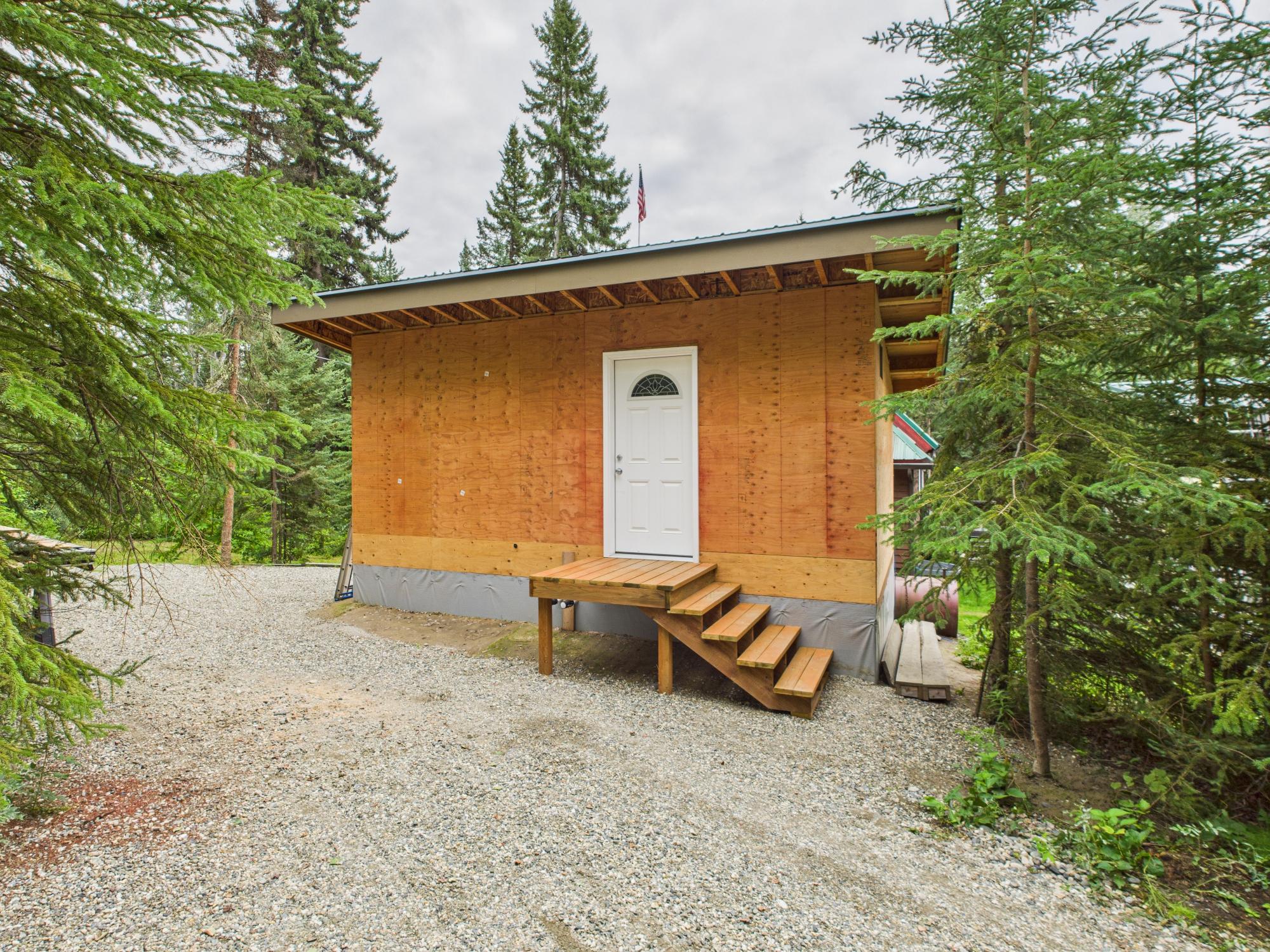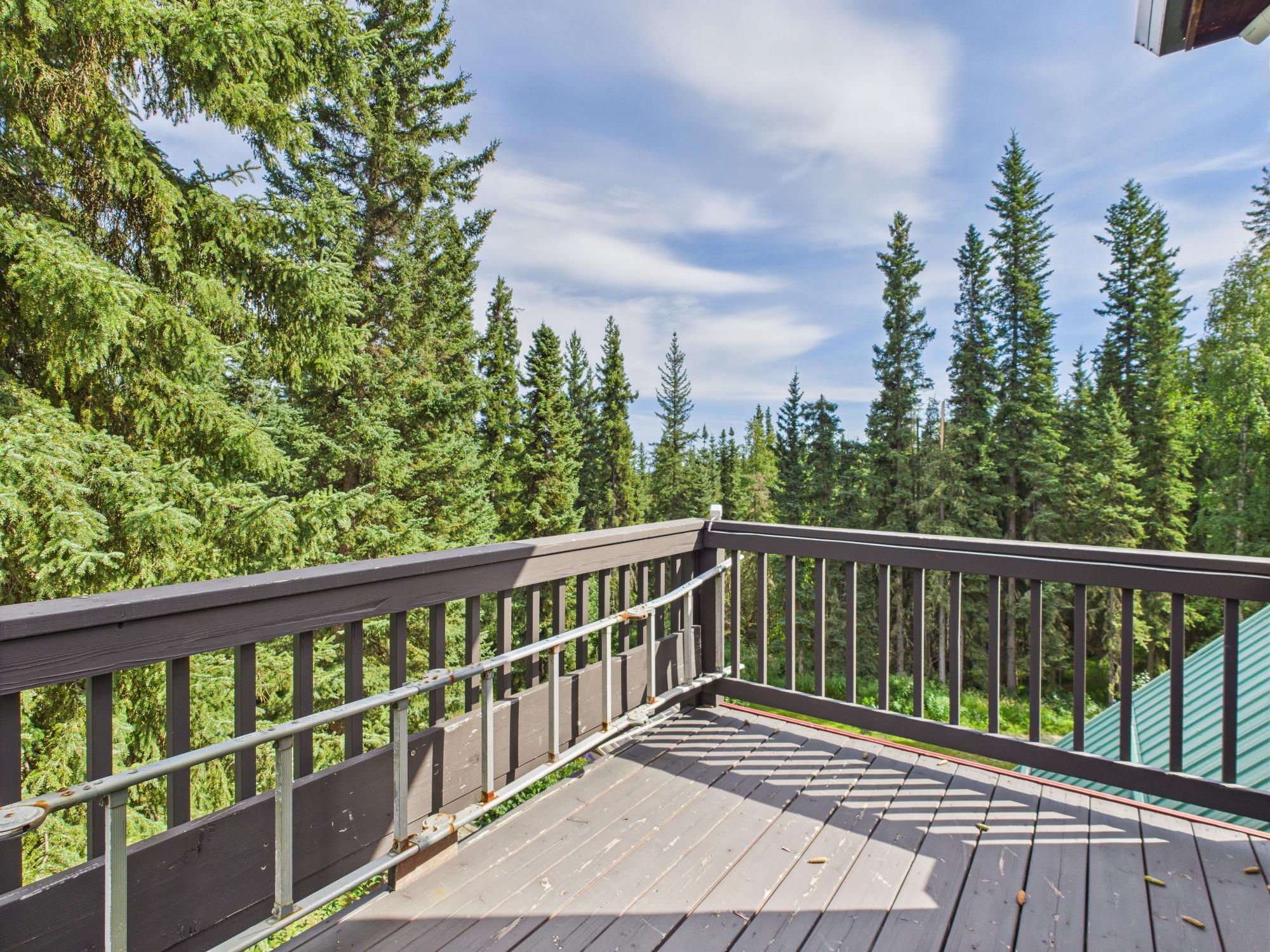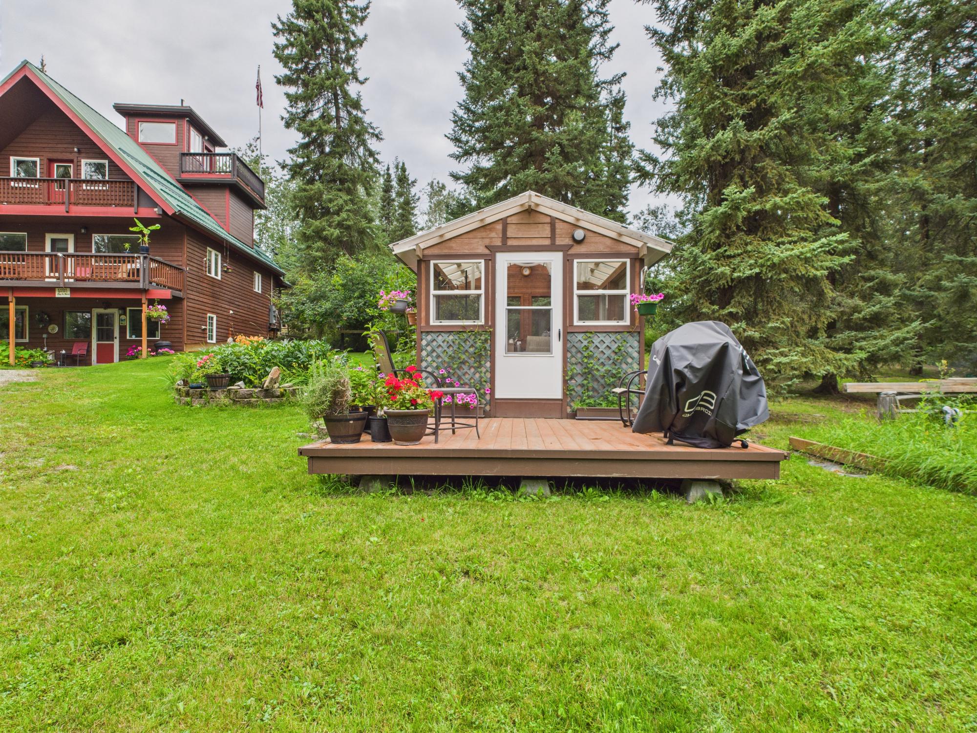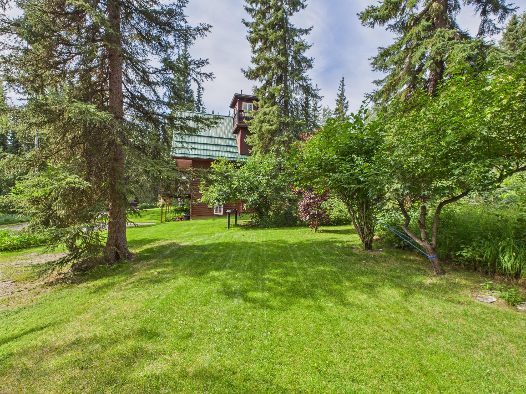 Set on a private, wooded one-acre parcel, this exceptional property features a three-story Chalet-style main home with a unique fourth-level Auroratorium—a dedicated viewing room with its own deck that rises above the roofline. Designed for aurora viewing or quiet reflection, the Auroratorium offers windows on all sides as well as outdoor deck access, creating a truly special retreat.