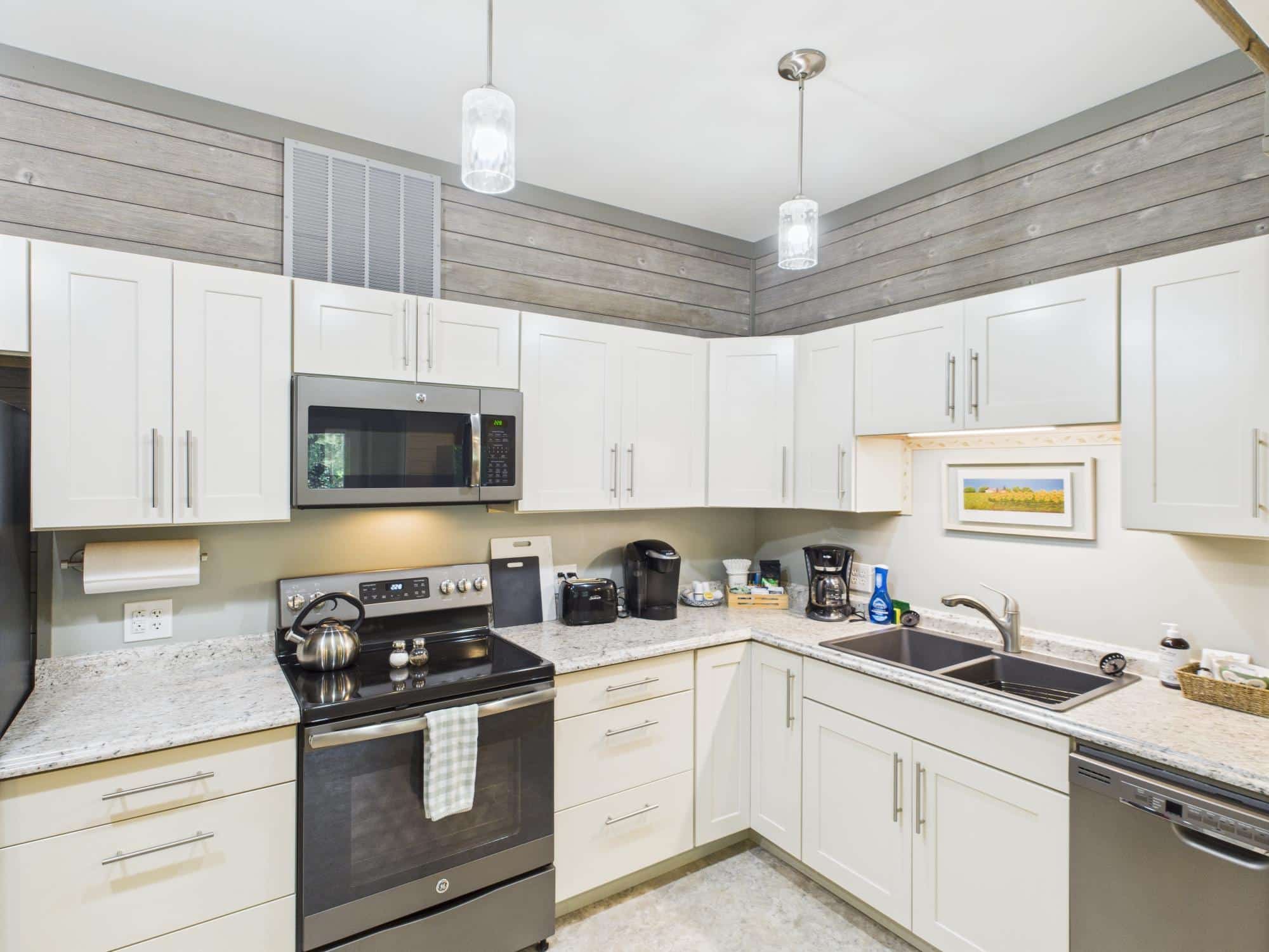 The main house includes a separate 800 sq ft ground-floor chalet apartment suite with its own private entrance. This unit has operated as a successful VRBO vacation rental for 16 years, with the owners holding Premier Host status