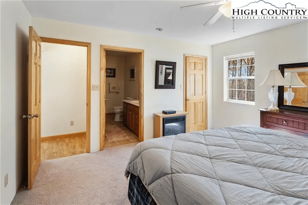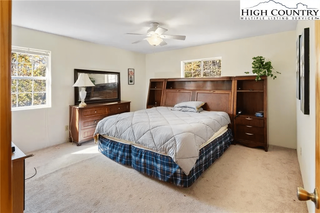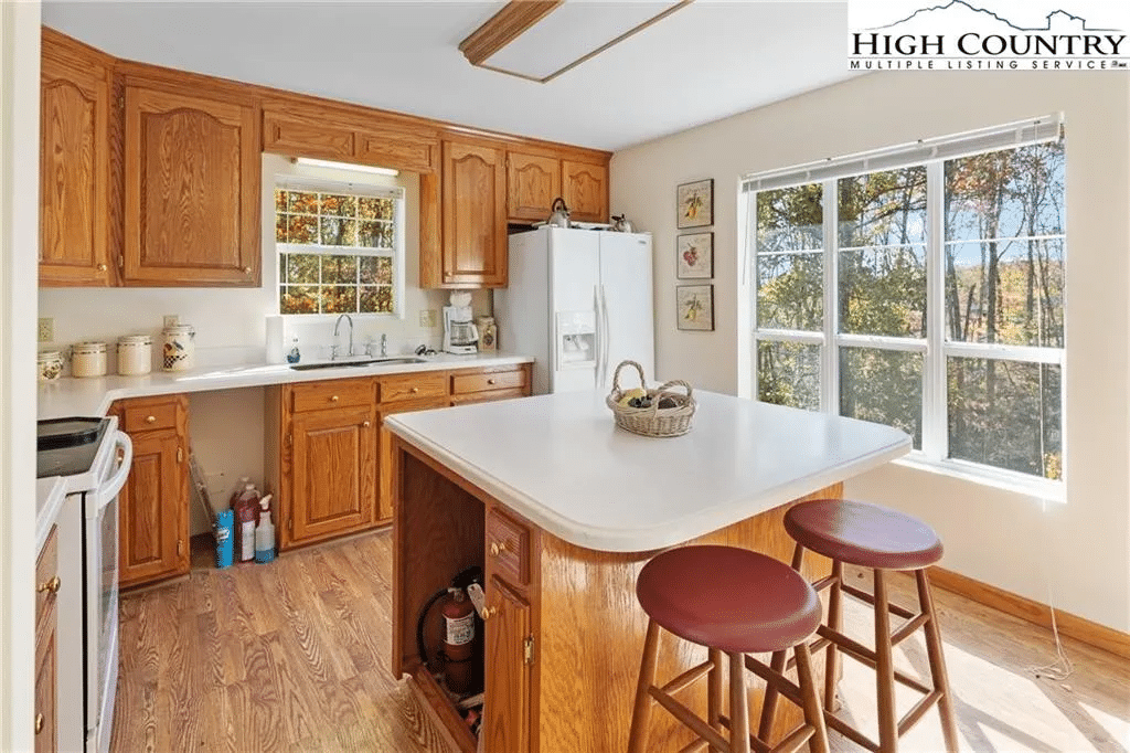 The previous owners are moving 6 states away so this amazing home is now up for sale. Over 15 years of painstakingly planting a variety of fruit bearing trees, blueberry bushes, blackberry, raspberry and more complement the two natural artesian wells found on the property. The home sits on a view line where you can see the bright lights of Beech Mountain Ski when lit up in the winter months.