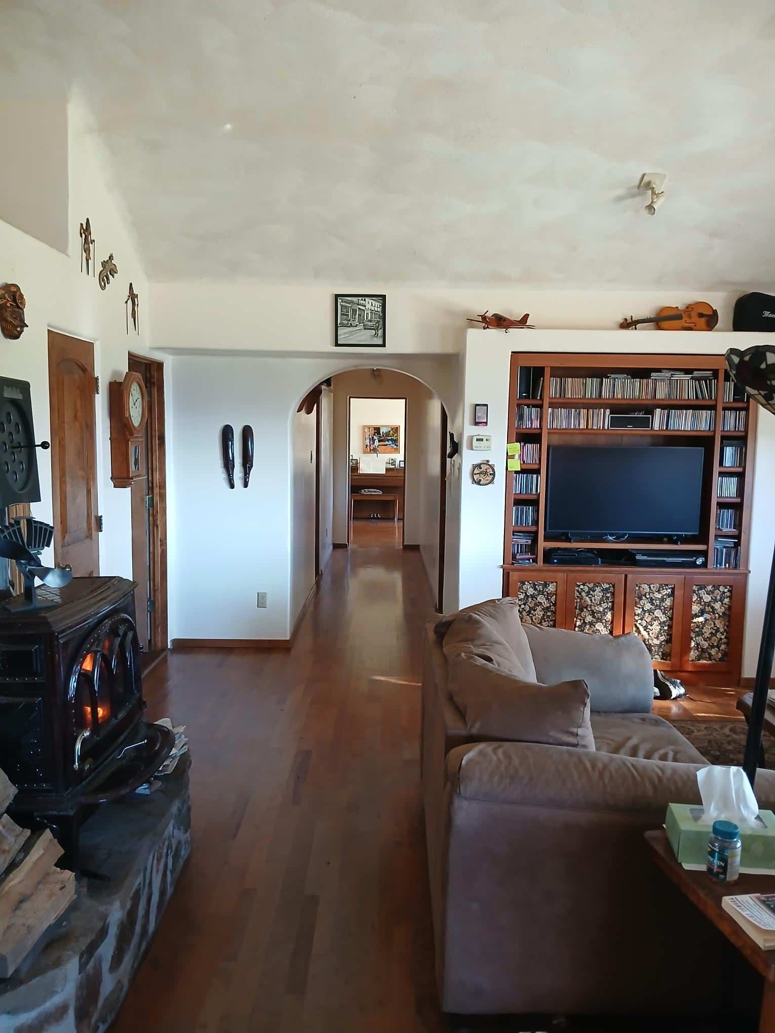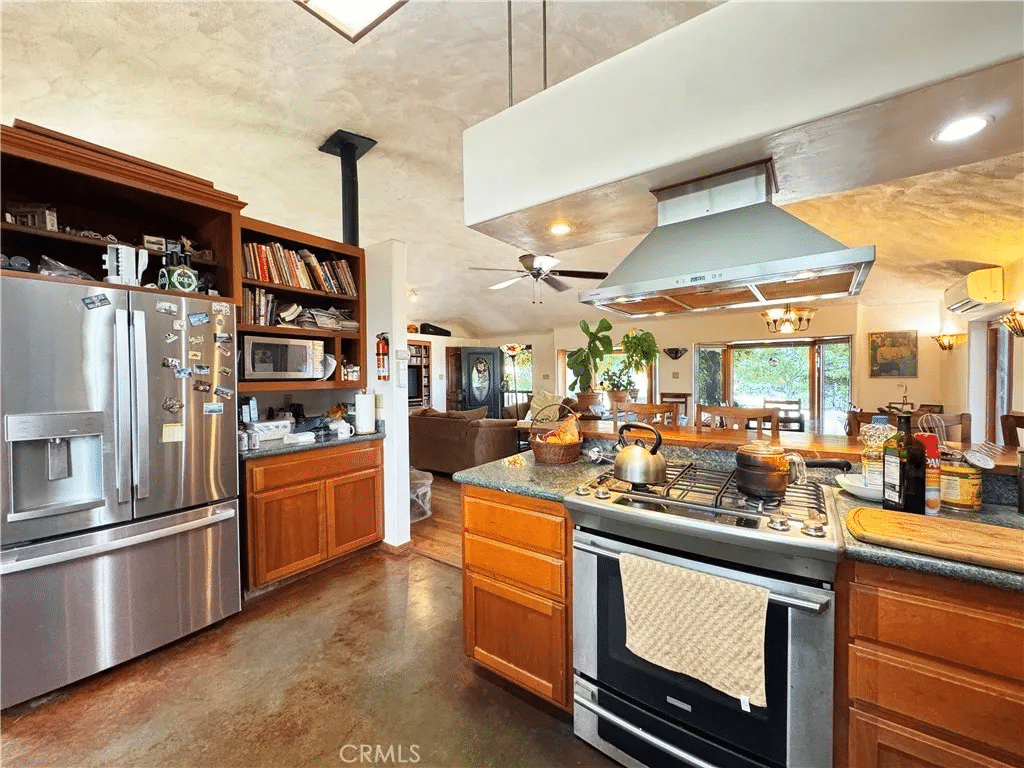Homes like this are hard to find — already constructed, fully set up, and designed for a self-sufficient lifestyle. The design emphasizes stability, practicality, and long-term sustainability, from locally milled stone and Madrone hardwood floors to polished concrete surfaces. The walls and ceiling are finished in craftsman-applied plaster, adding natural texture and long-lasting durability.