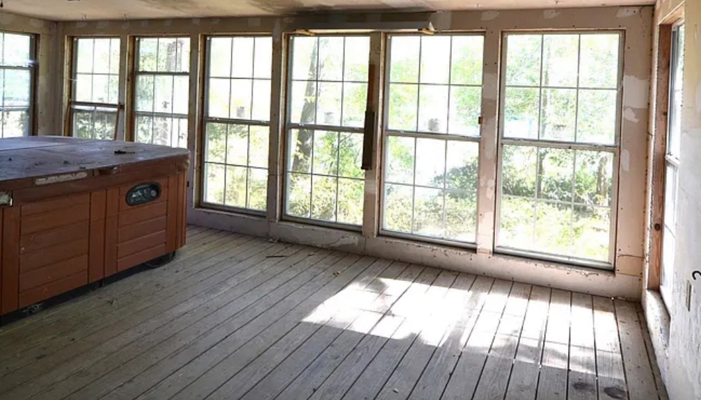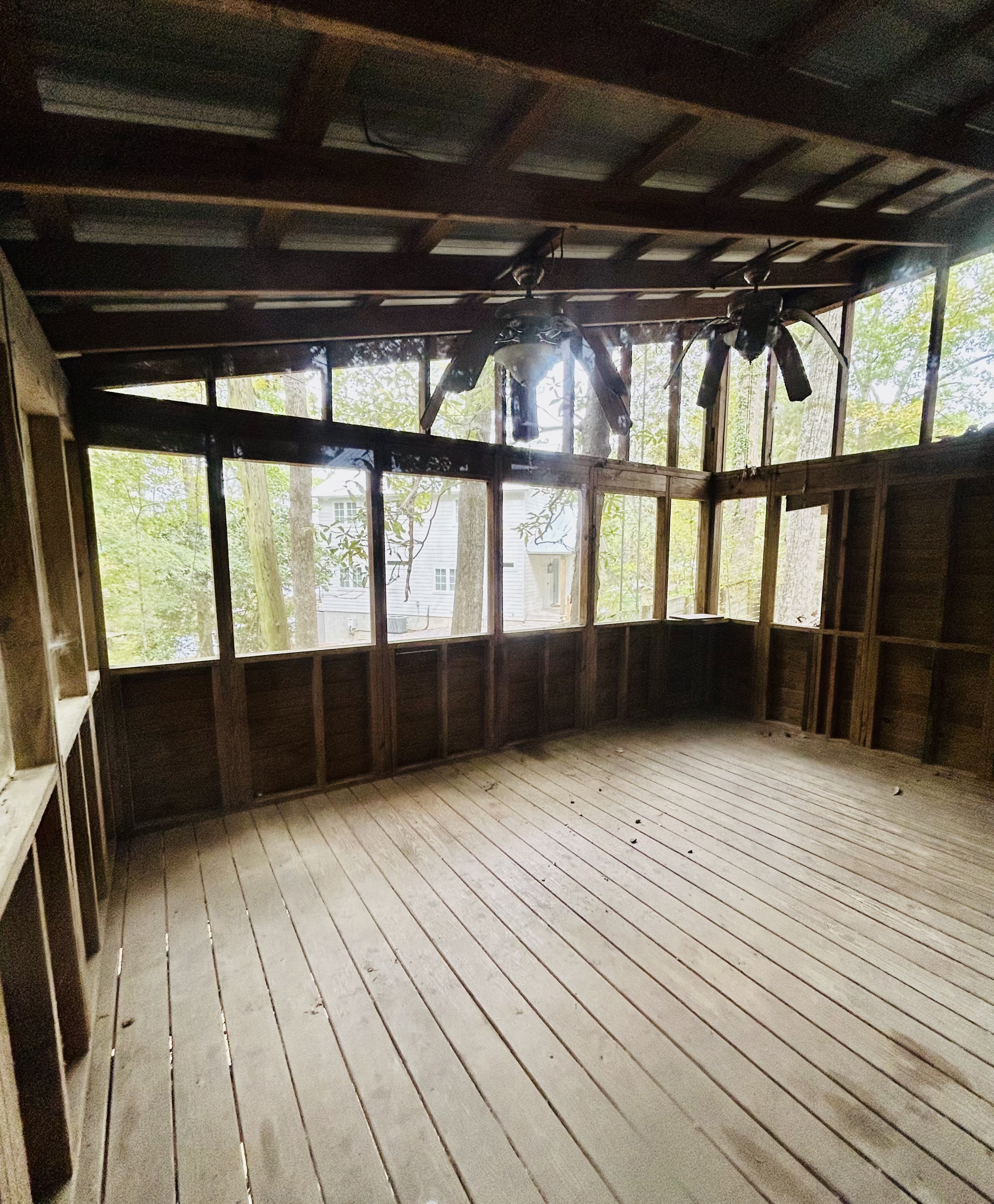 Step through an antique door to find an unfinished, enclosed deck with lovely lake views.
