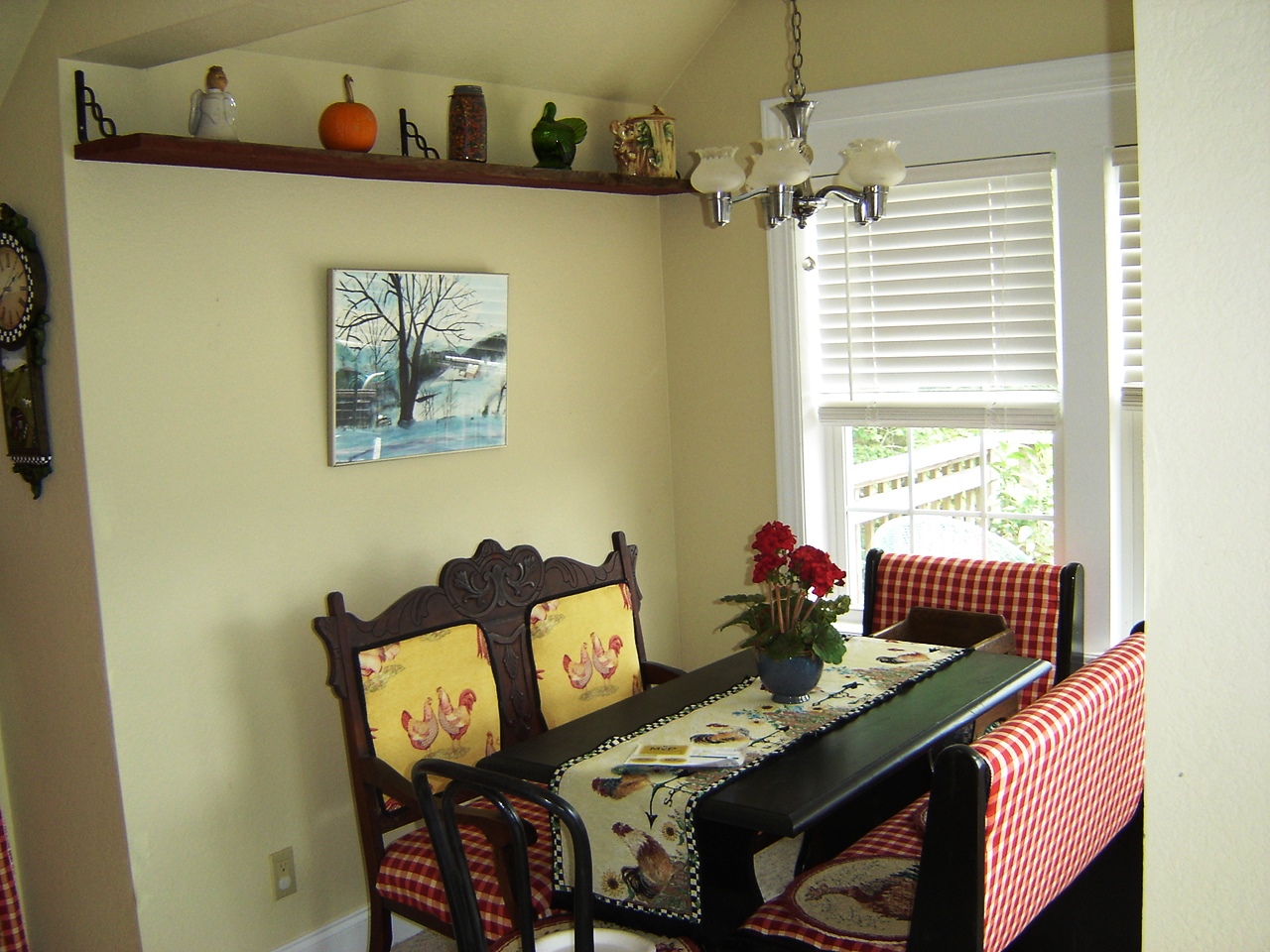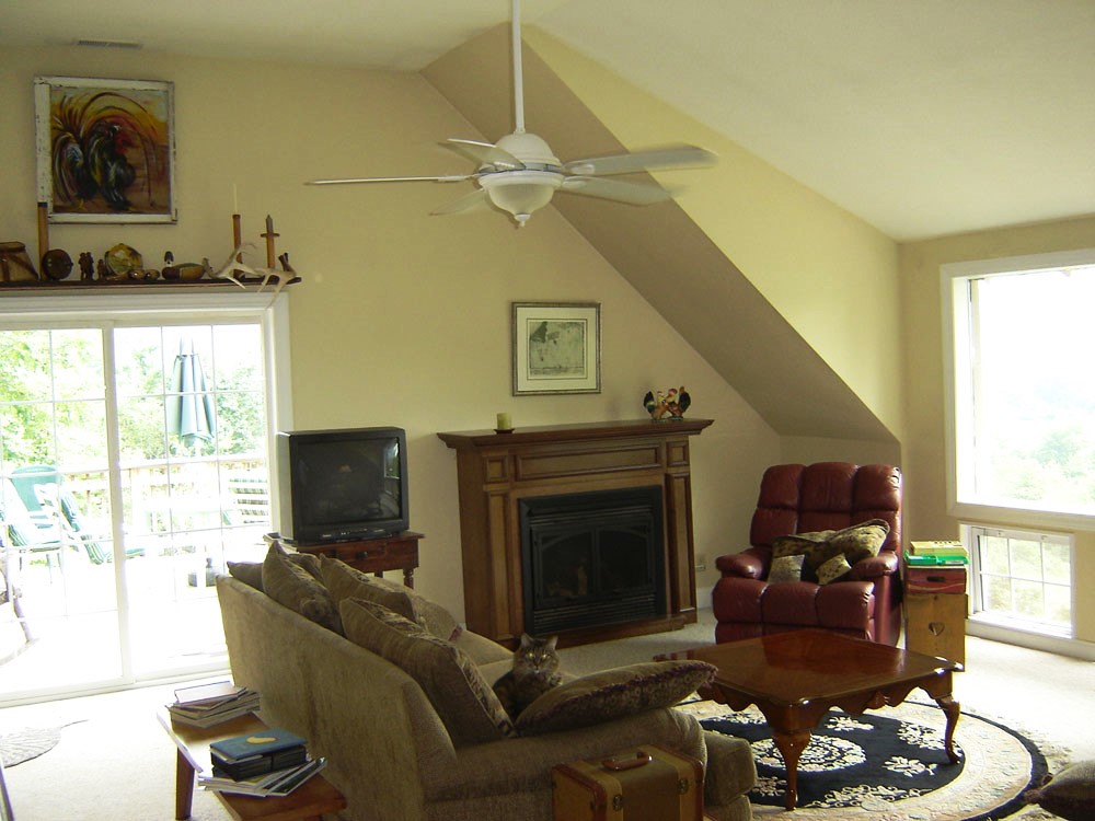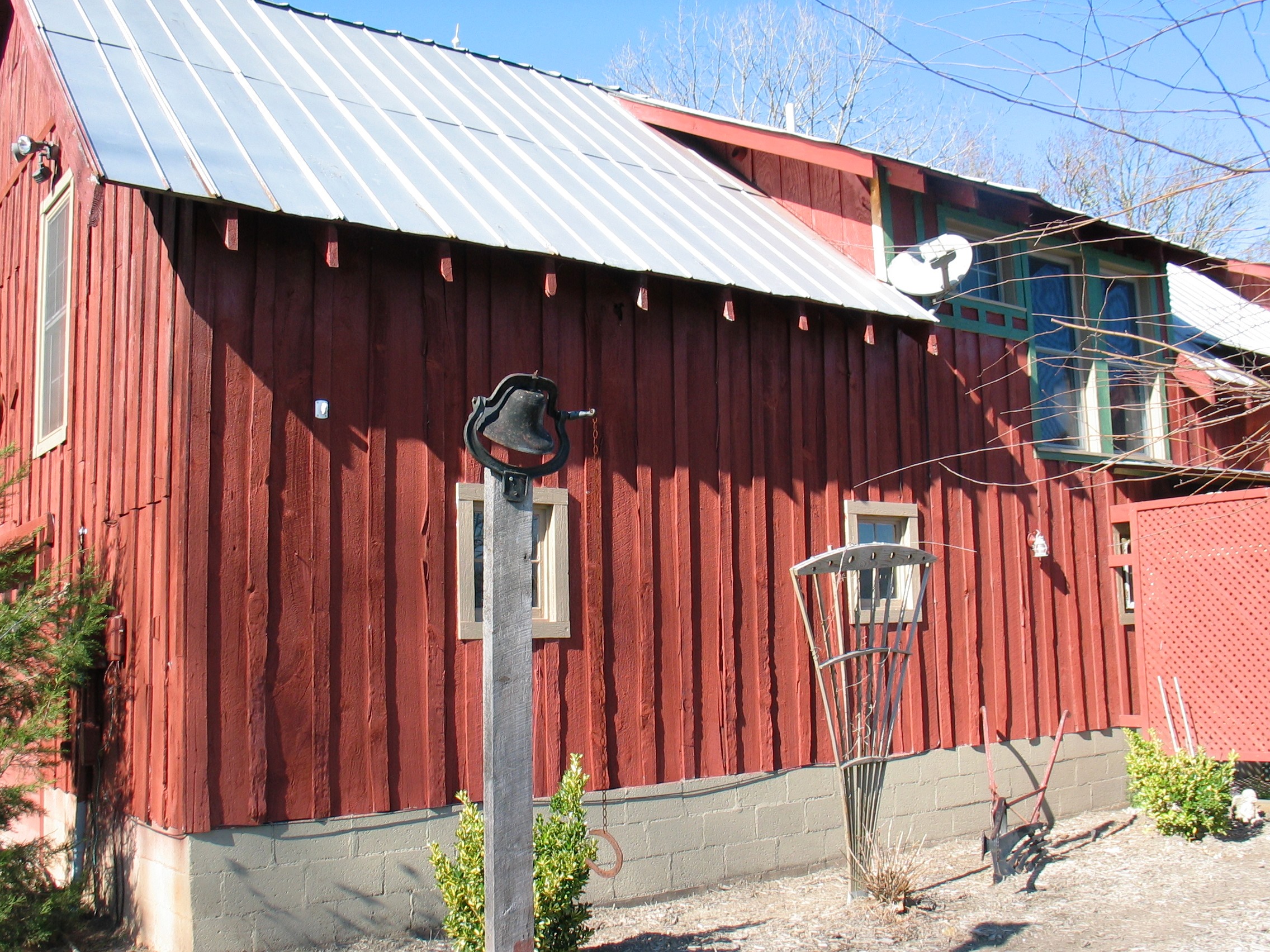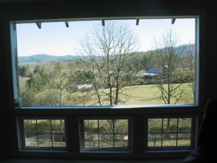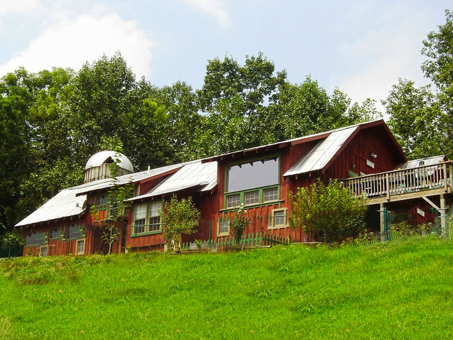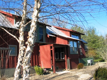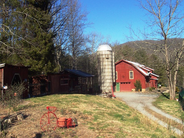 She draws inspiration for her paintings from the beautiful surroundings of Little River Valley, Jeter Mountain, and Pisgah Forest. He likes to write on the deck overlooking endless long-range views. Just up the hill from the herb garden is a small stocked trout pond shared with the neighbor and perfect for picnics. A wisteria-covered silo sits right beside the barn, and numerous outbuildings, each with its own special character and viewpoint, has served as quiet spots for artistic inspiration.