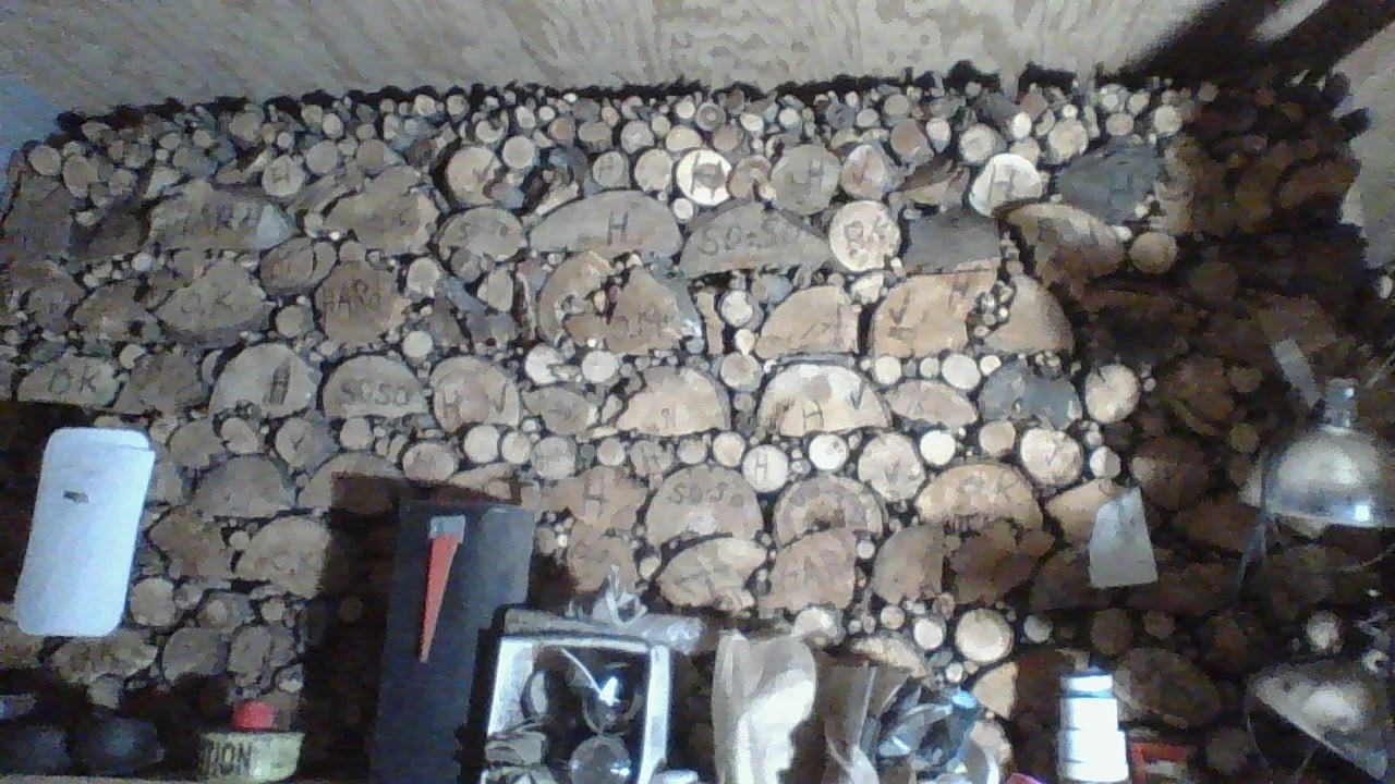 Stacked firewood, indoor wood heat unit, and insulation so good, it holds 70°F in summer and 40°F in winter—no HVAC required